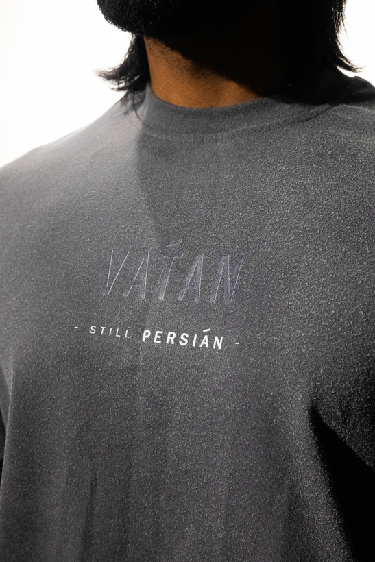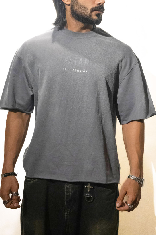 تیشرت طوسی با چاپ عبارت «VĀTAN » به رنگ سورمه ای ، بهسادگی بر تداوم هویت ایرانی تاکید میکند. با سر آستین های متفاوت دوخته شده ، حالوهوای آزاد و بدون تکلفی به طراحی دادهاند. مناسب برای استفادهی روزمره یا ترکیب با آیتمهایی که ظاهری متمایز میسازند.