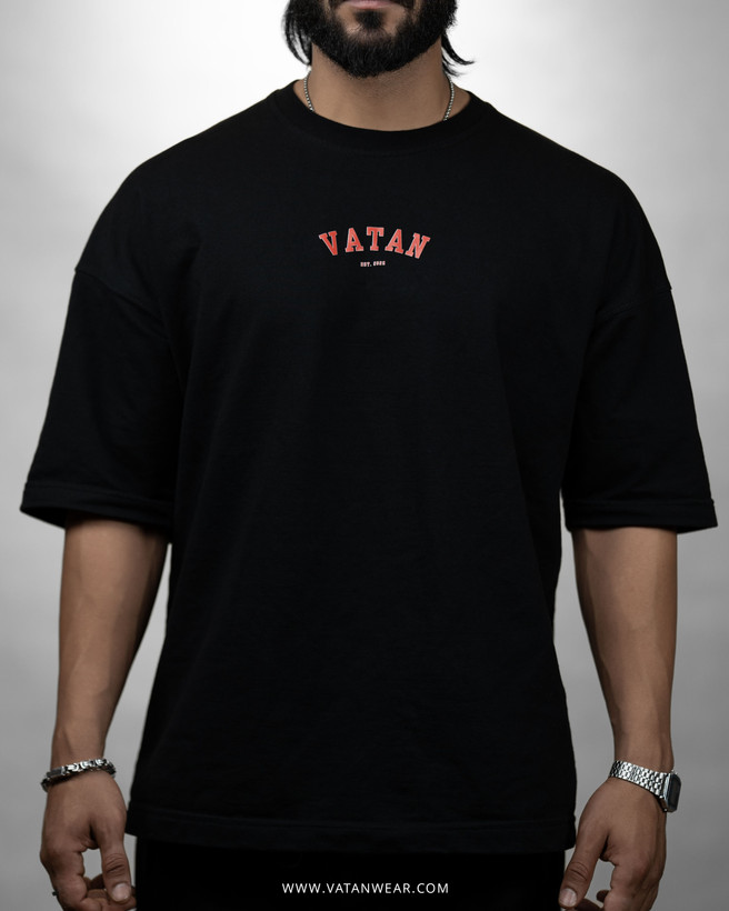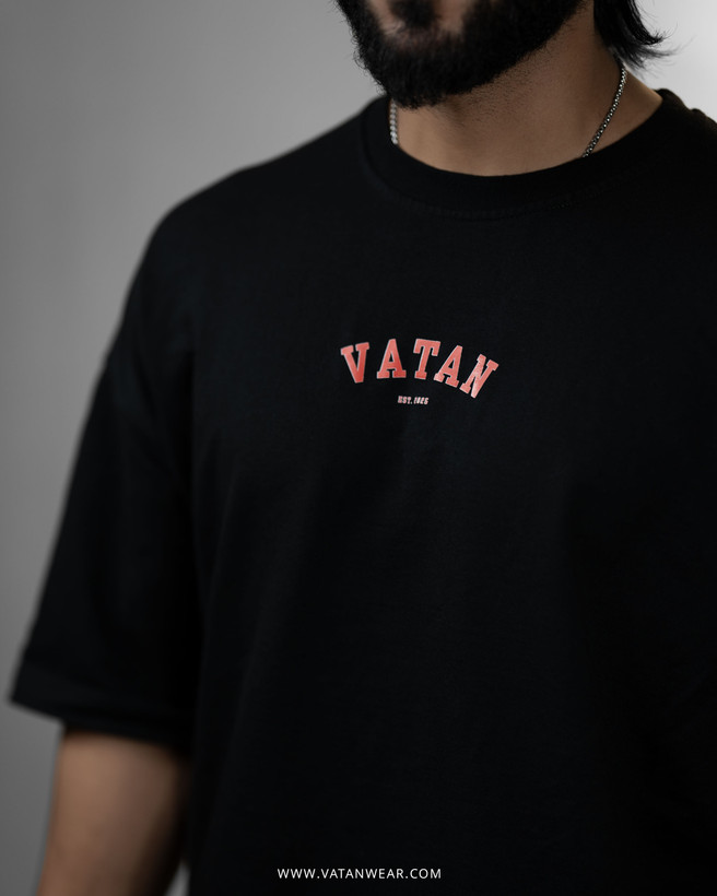 رنگ مشکی یکدست در کنار تایپوگرافی "Vatan" روی سینه، بیصدا اما عمیق حرف میزند.